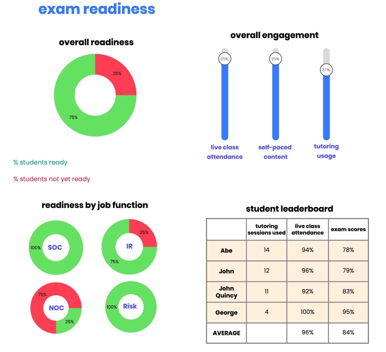 our dashboard gives insights into employee usage, participation, and exam readiness.
